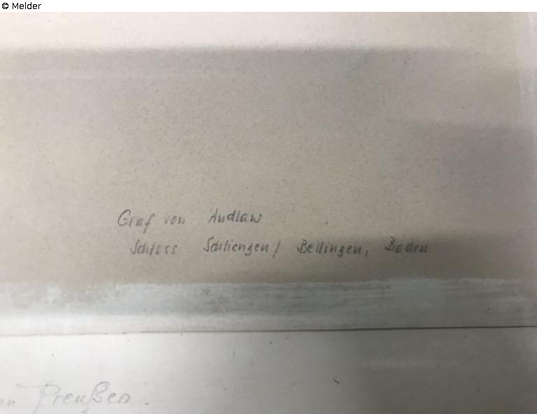 verso: Graf von Andlaw | Schloss von Schliengen / Bellingen, Baden; recto auf dem Passepartout mit Bleistift: Luise Königin in Preußen * 10.3.1776 † 19.7.1810