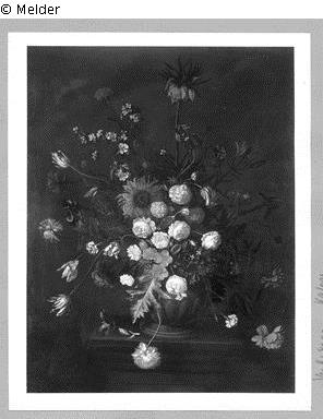 Fundmeldung | Einzelobjekt Blumenstrauß Lost Art-ID531512 Vorherige Weiter Hersteller/Künstler:in Verbruggen, Gaspar Peeter I Geburt (vor) 1635.09.08, Antwerpen Tod 1681.04.16 / 1687.04.16, Antwerpen WirkungsortAntwerpen TitelBlumenstraußObjektartGemäldeObjektgruppeMalereiMaterial / TechnikÖl ; Leinwand / gemalt Höhe 160,00 cm Breite 116,50 cm InventarnummerMü. 9246; aa6085Beschreibung Blumenstrauß in einer Vase auf einem Tisch stehend. In der Mitte eine Sonnenblume. Weiterlesen Weniger anzeigen Veröffentlicht seit26.01.2016 Kontakt Bundesamt für Auswärtige Angelegenheiten Kirchhofstraße 1-2 14776 Brandenburg Deutschland E-MailI-AU-RL@bfaa.bund.de