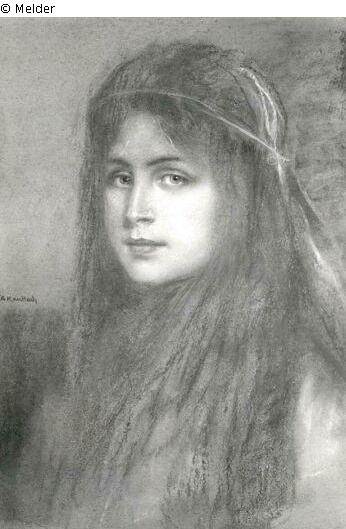 Brustbild eines Mädchens mit langem Haar
