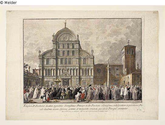 Beschriftung: Antonius Canal Pinxit. / Jo. Bap. Brustolon inc. / Templum D. Zachariae dicatum ingreditur Serenißimus Princeps in die Paschatis solemnißima ... No. 10.