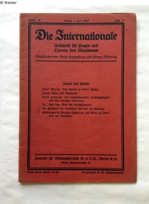 Die Internationale (Jg. 12, Heft 13). Zeitschrift für Praxis und Theorie des Marxismus. Begründet von Rosa Luxemburg und Franz Mehring
