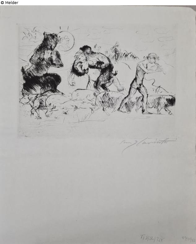 Recto: u.r. in Blei Signatur „Lovis Corinth“, Inv.nr. „VI b/52/350“, „47/1922“; Verso: u.l. in Blei „57/57[?]“.