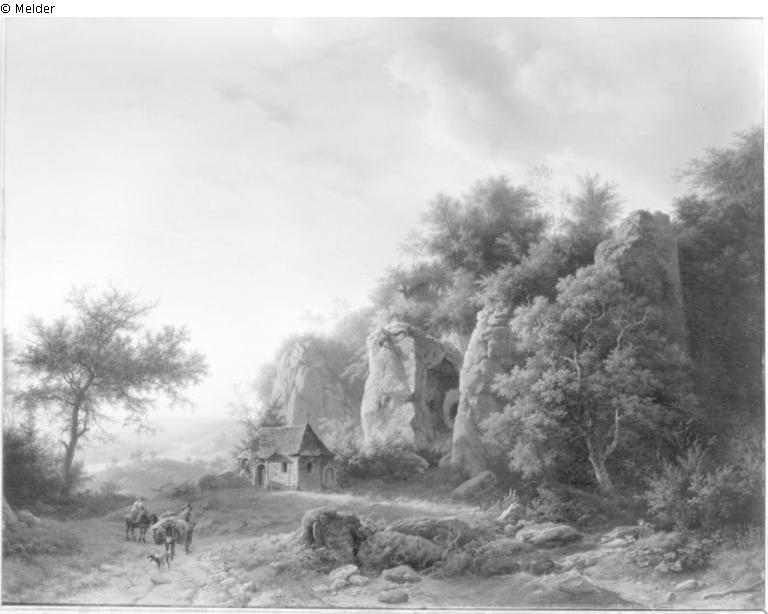 Felsenlandschaft mit Stolleneingang und Kapelle