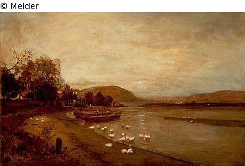 Flußlandschaft bei Lundenburg / Flußlandschaft mit Gänsen / Strudengau