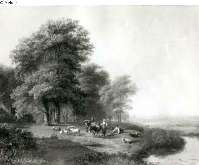 Fundmeldung | Einzelobjekt Flußlandschaft mit Hirten und Eseltreibern Lost Art-ID218898 Vorherige Weiter Hersteller/Künstler:in Koekkoek, Barend Cornelis Geburt 1803.10.11, Middelburg Tod 1862.04.05, Kleve WirkungsortHilversum; Beek (Nymwegen); Kleve TitelFlußlandschaft mit Hirten und Eseltreibern Datierung1827ObjektartMalereiObjektgruppeMalereiMaterial / TechnikÖl ; Leinwand / gemalt Höhe 46,50 cm Breite 58,00 cm Inventarnummermü10958Beschreibung Signatur: B.C.Koekkoek/1827; Große Baumgruppe im Mittelgrund links. Davor die Herde, links davon Schafe. Rechts Gewässer (Fluß?) Weiterlesen Weniger anzeigen Bestand Kulturgüter aus dem ehemaligen ReichsvermögenVeröffentlicht seit2001 Kontakt Kunstverwaltung des Bundes Herbert-Bayer-Straße 5 13086 Berlin Deutschland E-Mailprovenienzforschung@kvdb.bund.deHomepagehttp://www.kunstverwaltung.bund.de