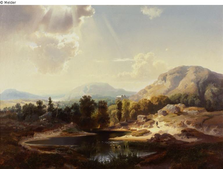 Gebirgslandschaft bei herannahendem Gewitter; Mittelgebirgslandschaft mit See