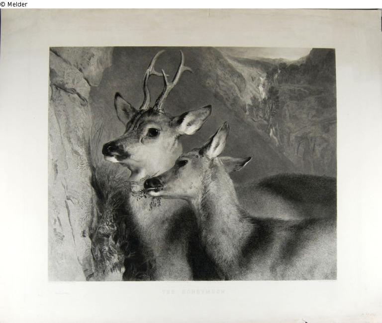 Unter Bild, links: PAINTED BY SIR EDWIN LANDSEER, R.A.; mittig: THE HONEYMOON.; rechts: ENGRAVED BY I. B. Prett