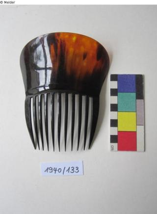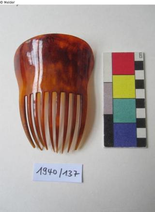 Schornsteinfegermeister Johannes Düker zusammen mit 16 weiteren Objekten für insgesamt 70 Reichsmark. Laut Eingangsbuch stammten diese Kämme aus einem „Kaufmannsgeschäft in Sievershausen im Solling“. In Sievershausen betrieb die jüdische Kaufmannsfamilie Friede Lehmann bis 1934/35 ein Kolonialwarengeschäft. Wie das Inventar des Kolonialwarengeschäftes in den Besitz von Johannes Düker kommt, ist unklar. Die Kämme haben keine Besitzvermerke oder Stempel.
