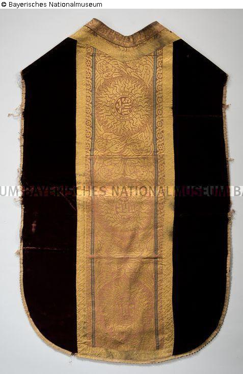 Kasel aus rotem Samt mit rot-gelber Florentiner Borte