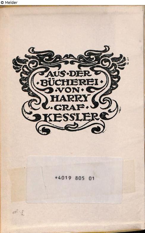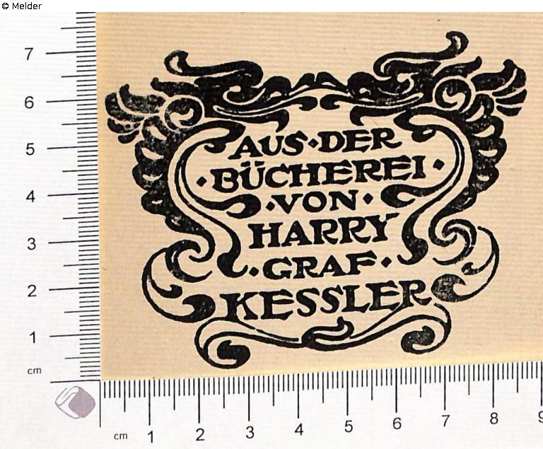 Exlibris: "Aus der Bücherei von Harry Graf Kessler", Spiegel, gestempelt