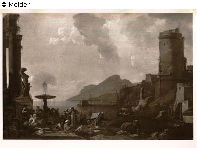 Seehafen mit Befestingungsturm und reicher Staffage (Seehafen)