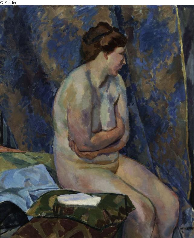 Rückseite: Schild "A 278 Sitzender Weiblicher Akt 1912 ..."; Aufschrift 1828 Kaltreuther; Schild Moderne Galerie Heinrich Thannhauser, München, Theatinerstraße 7