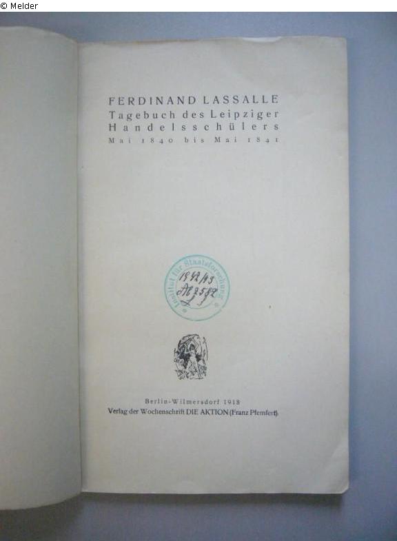 Tagebuch des Leipziger Handelsschülers. Mai 1840 bis Mai 1841. - Reihe: "Der rote Hahn", hg. von Franz Pfemfert (Doppelband 6/7)