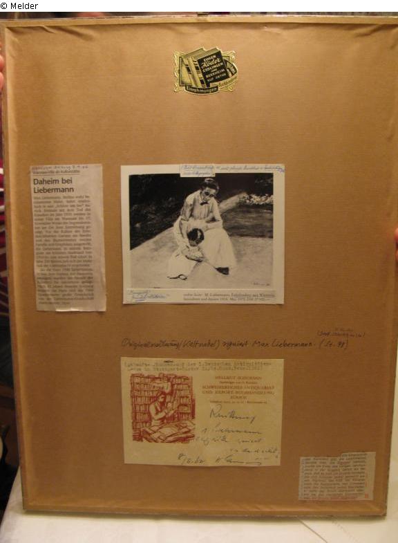signiert; auf der Rückseite: handschriftliche Bewertung, mehrere Zeitungsartikel und der Kaufbeleg vom Eigentümer aufgeklebt