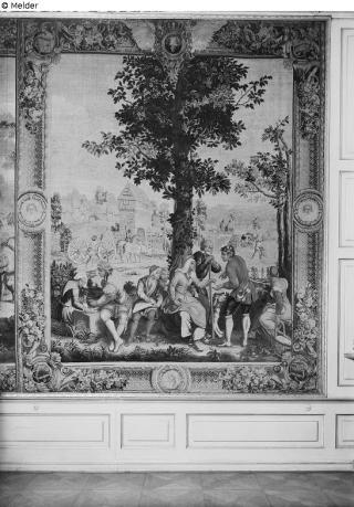 Suchmeldung Tapisserie Monat Mai, Sternzeichen Zwilling aus der Serie "Les mois Lucas" Mois Lucas. Mai Signe des Gémaux Hersteller/Künstler:in Audran, Jean (zugeschrieben) Manufaktur Manufacture Royale des Gobelins Paris, Atelier de Hautelisse Objektart Gebrauchs- / Raumtextilie Material / TechnikTextil (Wolle) ; Textil (Seide) / Bildwirkerei (Hautelisse)Lost Art-ID628698