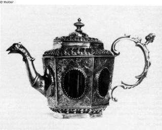 Suchmeldung Teekanne Hersteller/Künstler:in Baur, Tobias (1660) Objektart Gefäß Material / TechnikMetall (Silber) ; Achat / vergoldetLost Art-ID208598