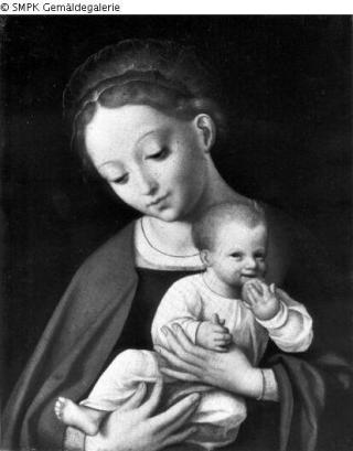 Suchmeldung Maria mit dem Kind Hersteller/Künstler:in Cleve, Joos van (Kopie nach) Objektart Malerei Material / TechnikHolz (Eiche) / gemaltLost Art-ID257681