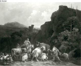 Fundmeldung Herde an einer Furt Hersteller/Künstler:in Dietrich, Christian Wilhelm Ernst Objektart Malerei Material / TechnikÖl / gemaltLost Art-ID220741