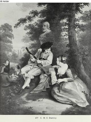 Suchmeldung Komödienszene im Park Hersteller/Künstler:in Dietrich, Christian Wilhelm Ernst Objektart Malerei Material / TechnikÖl ; Leinwand / gemaltLost Art-ID568386