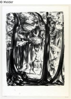 Fundmeldung Zwei Männer nach Vogelnestern Ausschau haltend Hersteller/Künstler:in Dreher, Richard Objektart Druckgrafik Material / TechnikPapier / gedruckt (Lithographie)Lost Art-ID429466