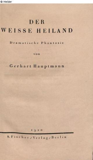 Fundmeldung <<Der>> weisse Heiland Autor:in Hauptmann, Gerhart Verlag Fischer Objektart Buch Lost Art-ID631975