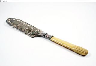 Fundmeldung Tortenheber Hersteller/Künstler:in Foehr (Stuttgart) Objektart Kunsthandwerk / -gewerbe Material / TechnikMetall (Silber) ; Elfenbein / durchbrochenLost Art-ID533606
