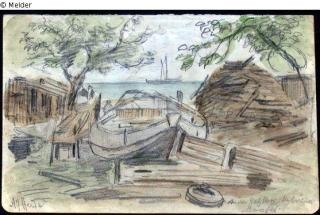 Fundmeldung Bootsanlegestelle in Stralau Hersteller/Künstler:in Heide, Alfred Objektart Zeichnung Material / TechnikBleistift ; Papier ; Karton / gezeichnetLost Art-ID475434