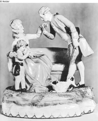 restituiert Fundmeldung Dame mit Kavalier und Kind Manufaktur Kaiserlich Königliche Porzellanmanufaktur Wien (Modelleur: Grassi, Anton) Objektart Kleinkunst Material / TechnikKeramik (Porzellan)Lost Art-ID408025