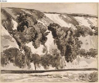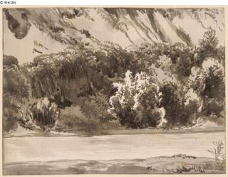 Fundmeldung Bewachsener Steilhang, unten ein Fluss Hersteller/Künstler:in Kobell, Franz Innocenz Josef Objektart Zeichnung Material / TechnikPapier ; Tusche braungrau / gezeichnet ; laviertLost Art-ID601680