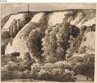 Fundmeldung Steilhang, zum Teil bewachsen, unten Gebüsch Hersteller/Künstler:in Kobell, Franz Innocenz Josef Objektart Zeichnung Material / TechnikPapier ; Tusche braungrau / gezeichnet ; laviertLost Art-ID601677