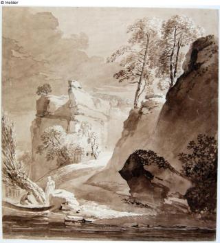 Fundmeldung Felsen am Fluss, vorn Mann im Boot und Frau Hersteller/Künstler:in Kobell, Franz Innocenz Josef Objektart Aquarell Material / TechnikFarbe braun ; Graphit / gemalt ; gezeichnet (Pinsel)Lost Art-ID579258