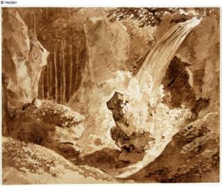 Fundmeldung Wasserfall im Walde Hersteller/Künstler:in Kobell, Franz Innocenz Josef Objektart Grafik Material / TechnikGraphit ; Farbe sepia / gezeichnet (Pinsel)Lost Art-ID579260