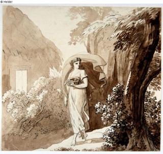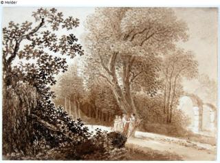 Fundmeldung Frauen unter Bäumen, rechts Bogenruine Hersteller/Künstler:in Kobell, Franz Innocenz Josef Objektart Zeichnung Material / TechnikBleistift ; Graphit ; Tusche sepia, braun / gezeichnet...Lost Art-ID579263