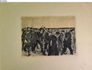 Fundmeldung Weberzug, Blatt 4 aus "Ein Weberaufstand" Hersteller/Künstler:in Kollwitz, Käthe Objektart Druckgrafik Material / TechnikPapier / gedruckt (Radierung)Lost Art-ID626518