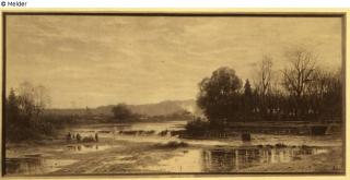 Fundmeldung Flusslandschaft mit Mühle und Wehr Hersteller/Künstler:in Lier, Adolf Heinrich Objektart Gemälde Material / TechnikÖl ; Leinwand / gemaltLost Art-ID593021