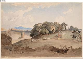 restituiert Suchmeldung Pilger in der römischen Campagna Hersteller/Künstler:in Mohn, Paul Objektart Zeichnung Material / TechnikWasserfarbeLost Art-ID168928