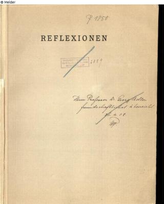 Fundmeldung Reflexionen Autor:in Rathenau, Walther Drucker:in C.G. Röder Verlag S. Hirzel Objektart Buch Lost Art-ID630116