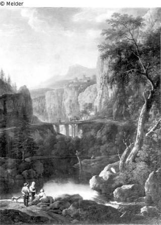Fundmeldung Blick in ein Gebirgstal mit Burg im Hintergrund Hersteller/Künstler:in Rosa, Salvator Objektart Malerei Material / TechnikÖl ; Leinwand / gemaltLost Art-ID220555