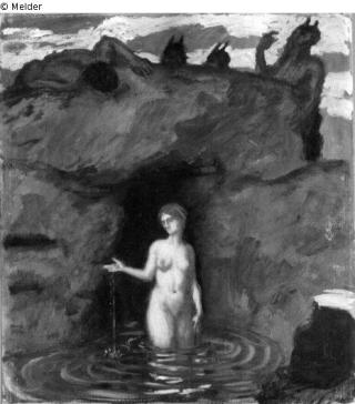 Fundmeldung Quellnymphe von Faunen belauscht Hersteller/Künstler:in Stuck, Franz von Objektart Malerei Material / TechnikÖl ; Pappe / gemaltLost Art-ID219629