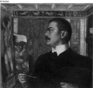 Fundmeldung Selbstbildnis an der Staffelei Hersteller/Künstler:in Stuck, Franz von Objektart Malerei Material / TechnikÖl ; Holz / gemaltLost Art-ID220732