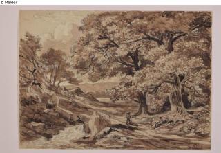 Fundmeldung Landschaft mit Wanderer zwischen Bach und Bäumen Hersteller/Künstler:in Wagner, Carl (1796) Objektart Zeichnung Material / TechnikTusche braun ; Graphit ; Papier / gezeichnet (Feder)...Lost Art-ID623326