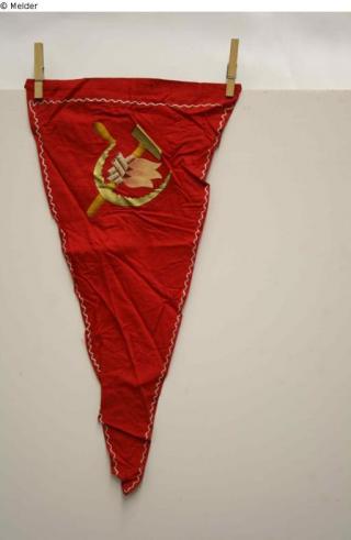 Fundmeldung Fahne Sowjetunion (Fragment, rund) Hersteller/Künstler:in Unbekannt Objektart Gebrauchs- / Raumtextilie Material / TechnikTextil / besticktLost Art-ID429770