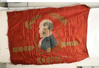 Fundmeldung Fahne (Banner) Sowjetunion mit Konterfei Lenin und Stalin Hersteller/Künstler:in Unbekannt Objektart Gebrauchs- / Raumtextilie Material / TechnikTextil / besticktLost Art-ID429768