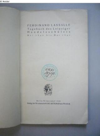 Fundmeldung Tagebuch des Leipziger Handelsschülers. Mai 1840 bis Mai 1841. - Reihe: "Der rote Hahn", hg. von Franz Pfemfert (Doppelband 6/7) Autor:in Lasalle, Ferdinand Verlag Die Aktion Objektart Buch Lost Art-ID459306