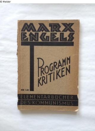 Fundmeldung Kritiken der sozialdemokratischen Programm-Entwürfe von 1875 und 1891. (3. durchgesehene und ergänzte Auflage). Reihe: Elementarbücher des Kommunismus, Bd. 12 Autor:in Marx, Karl; Engels, Friedrich Drucker:in "Neudrag", Filiale Chemnitz Herausgeber Duncker, Hermann (Hg.) Verlag Internationaler Arbeiter-Verlag Objektart Buch Lost Art-ID520870