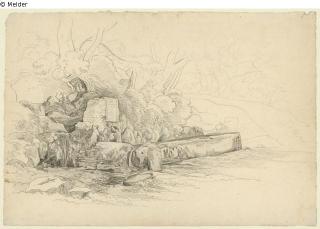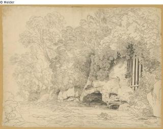 Fundmeldung Quelle mit Viehtränke im Wald Hersteller/Künstler:in Rohden, Johann Martin von Objektart Zeichnung Lost Art-ID476805