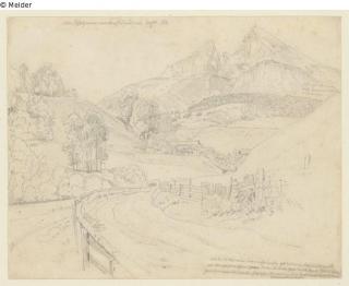 Fundmeldung Blick auf den Watzmann von Berchtesgaden aus Hersteller/Künstler:in Reinhold, Heinrich Objektart Zeichnung Lost Art-ID476811