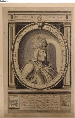 Fundmeldung Brustbild im Schriftoval, Maximilian I (Per tot discrimina..) Hersteller/Künstler:in Heyden, Jacob van der Objektart Druckgrafik Material / TechnikPapier / gedruckt (Kupferstich)Lost Art-ID593028