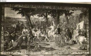 Suchmeldung Gobelin aus dem Alexanderzyklus "Der Sieg des Königs am Granikus" Manufaktur Manufacture nationale des Gobelins Objektart Gebrauchs- / Raumtextilie Lost Art-ID233355