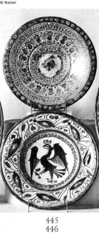 Suchmeldung Zwei kleine Rundplatten Hersteller/Künstler:in Unbekannt (Spanisch / Maurisch) Objektart Kunsthandwerk / -gewerbe Material / TechnikKeramik ; Metall (Zinn) ; Glasur (Majolika)Lost Art-ID449195